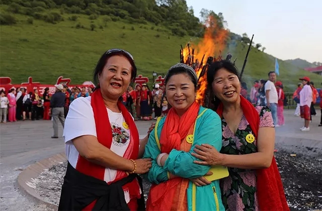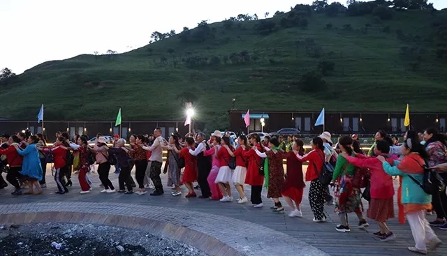 VIP團一行于7月4日啟程,歷時四天。第一站來到了關山草原。藍藍的天空,白白的云彩,綠綠的青草,星星點點的五色野花……遠離城市,遠離喧嘩,呼吸著略帶草香的清新空氣,興奮不已。夜幕降臨,草原上升起熊熊篝火,大家唱歌跳舞,盡情狂歡!叔叔阿姨們載歌載舞的盛大場面,吸引了周圍其他游客的目光,紛紛加入到孝當先VIP團隊中來,一起盡享歡樂時光。